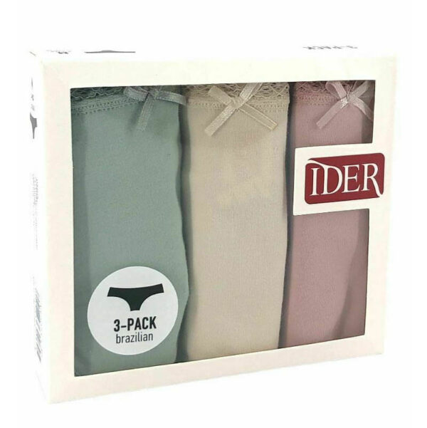 €13.60Γυναικεία βαμβακερά σλιπς σετ 3 τεμαχίων Bikini Μόκα – Dusty Pink – Light Green