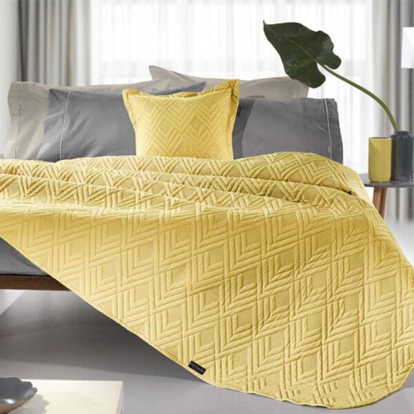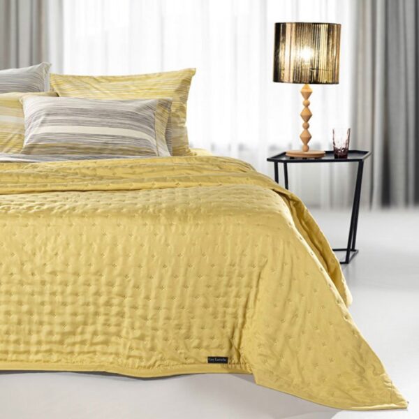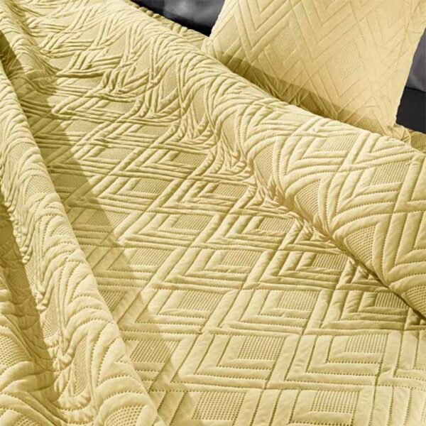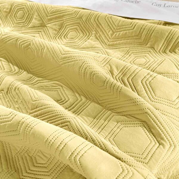 €40.00Κουβερλί μονό με ανάγλυφο γεωμετρικό σχέδιο και λαχανί χρώμα από την εταιρεία Guy Laroche. Το εξωτερικό ύφασμα είναι κατασκευασμένο από 100% microfiber ενώ εσωτερικά διαθέτει λεπτή πολυεστερική βάτα, που το καθιστά ιδανικό ανοιξιάτικο και καλοκαιρινό σκέπασμα.