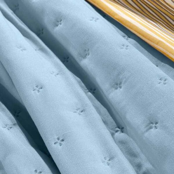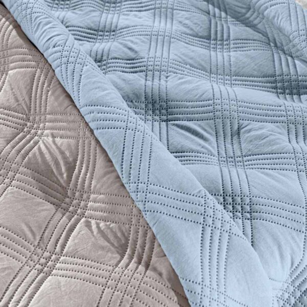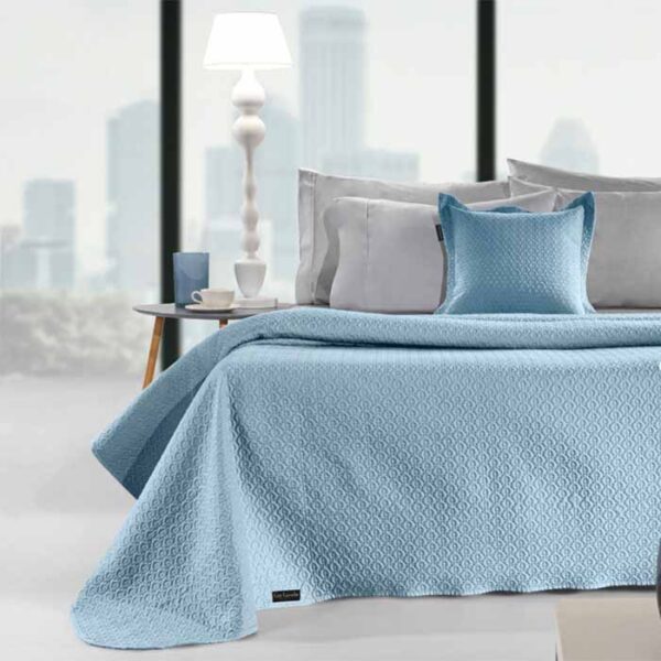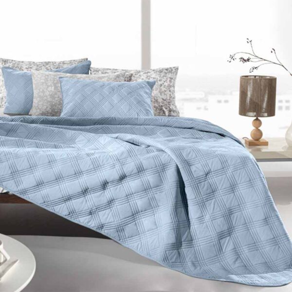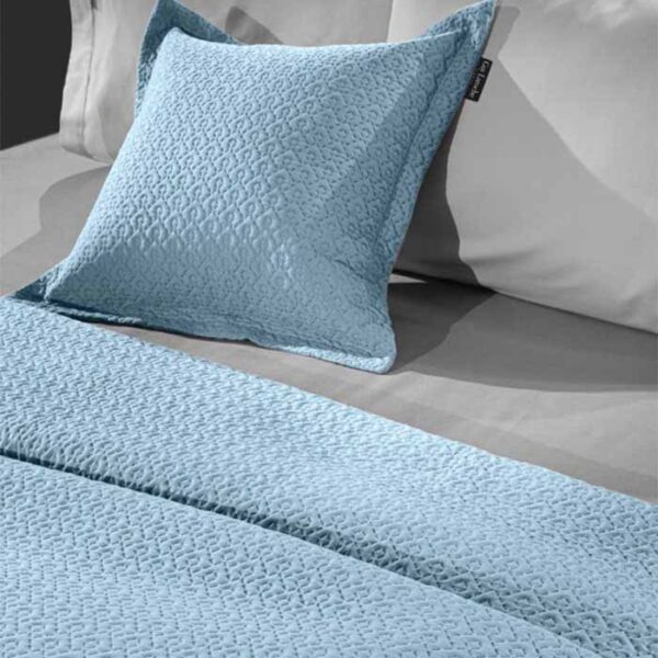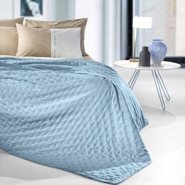 €40.00Κουβερλί μονό με καπιτονέ ανάγλυφο σχέδιο και μπλε ραφ χρώμα από την εταιρεία Guy Laroche. Το εξωτερικό ύφασμα είναι κατασκευασμένο από 100% microfiber ενώ εσωτερικά διαθέτει λεπτή πολυεστερική βάτα, που το καθιστά ιδανικό ανοιξιάτικο και καλοκαιρινό σκέπασμα. Το σετ περιλαμβάνει και την μαξιλαροθήκη oxford 45×45 με το ίδιο σχέδιο.