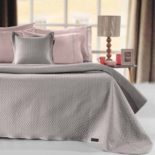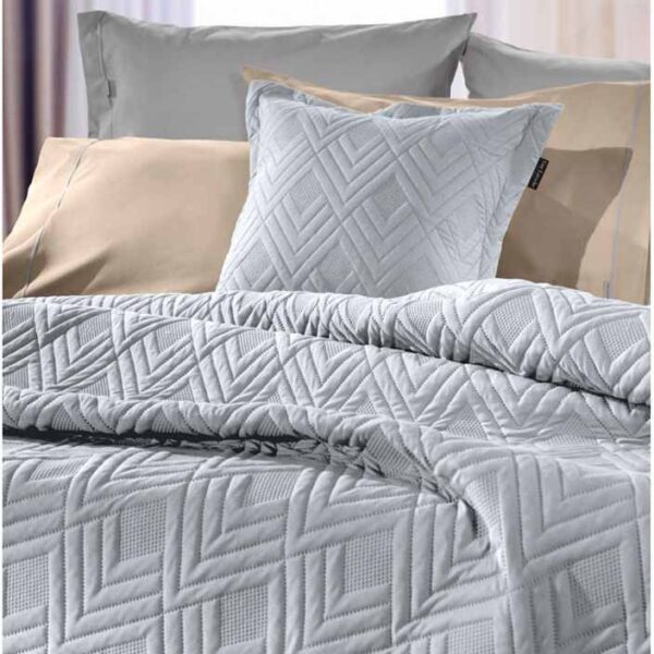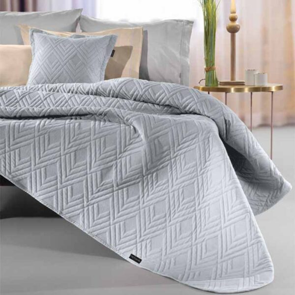 €54.00Κουβερλί μονό σετ σε γκρι χρώμα και γεωμετρικό ανάγλυφο σχέδιο από την εταιρεία Guy Laroche. Το εξωτερικό ύφασμα είναι κατασκευασμένο από 100% microfiber ενώ εσωτερικά διαθέτει λεπτή πολυεστερική βάτα, που το καθιστά ιδανικό ανοιξιάτικο και καλοκαιρινό σκέπασμα.
