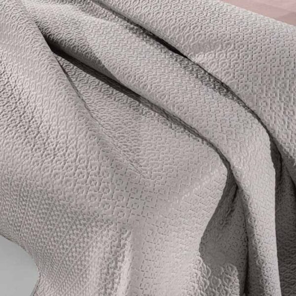 €40.00Κουβερλί μονό με ανάγλυφο γεωμετρικό σχέδιο και γκρι χρώμα από την εταιρεία Guy Laroche. Το εξωτερικό ύφασμα είναι κατασκευασμένο από 100% microfiber ενώ εσωτερικά διαθέτει λεπτή πολυεστερική βάτα, που το καθιστά ιδανικό ανοιξιάτικο και καλοκαιρινό σκέπασμα.