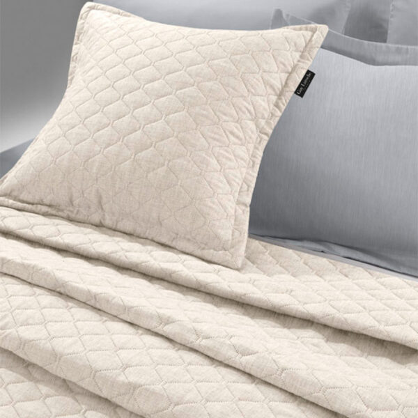 €60.00Κουβερλί γίγας με καπιτονέ ανάγλυφο σχέδιο και εκρού χρώμα από την εταιρεία Guy Laroche. Το εξωτερικό ύφασμα είναι κατασκευασμένο από 100% microfiber ενώ εσωτερικά διαθέτει λεπτή πολυεστερική βάτα, που το καθιστά ιδανικό ανοιξιάτικο και καλοκαιρινό σκέπασμα. Το σετ περιλαμβάνει και την μαξιλαροθήκη oxford 50×50 με το ίδιο σχέδιο.