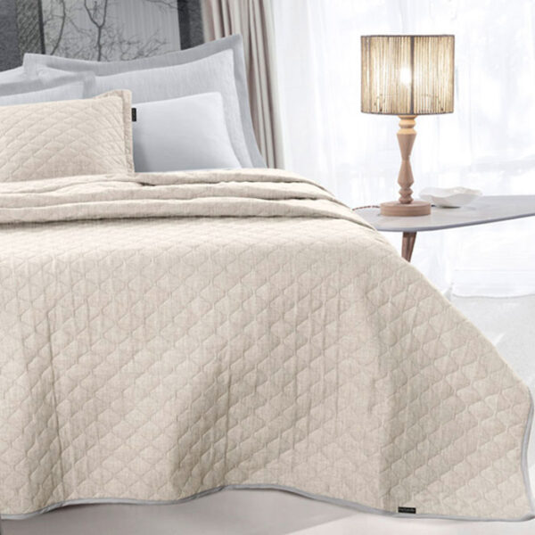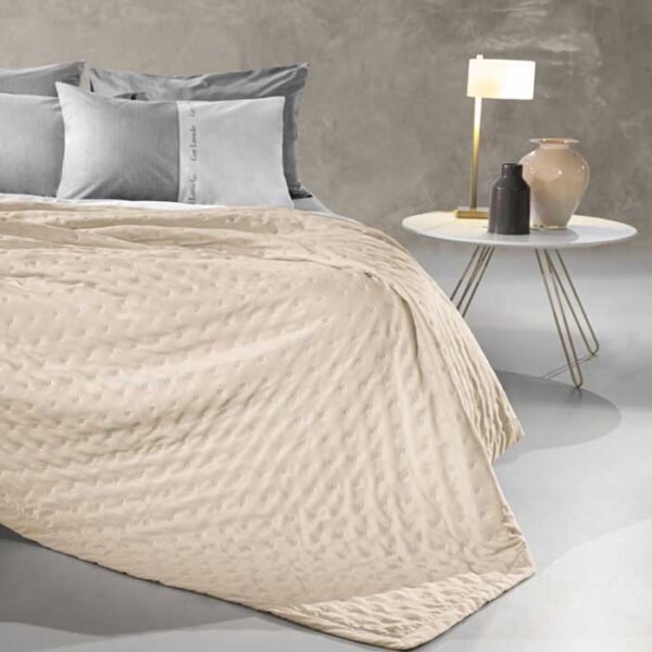 €54.00Κουβερλί υπέρδιπλο σετ σε εκρού χρώμα και ανάγλυφο σχέδιο από την εταιρεία Guy Laroche. Το εξωτερικό ύφασμα είναι κατασκευασμένο από 100% microfiber ενώ εσωτερικά διαθέτει λεπτή πολυεστερική βάτα, που το καθιστά ιδανικό ανοιξιάτικο και καλοκαιρινό σκέπασμα.
