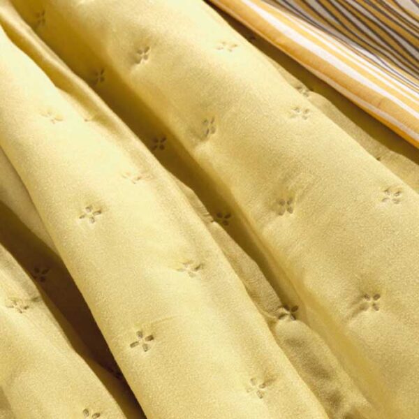 €40.00Μονό κουβερλί με καπιτονέ ανάγλυφο σχέδιο και λαχανί χρώμα από την εταιρεία Guy Laroche. Το εξωτερικό ύφασμα είναι κατασκευασμένο από 100% microfiber ενώ εσωτερικά διαθέτει λεπτή πολυεστερική βάτα, που το καθιστά ιδανικό ανοιξιάτικο και καλοκαιρινό σκέπασμα.