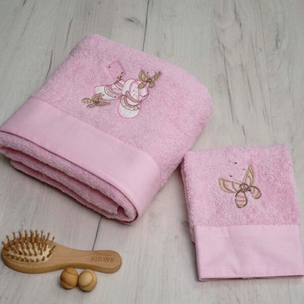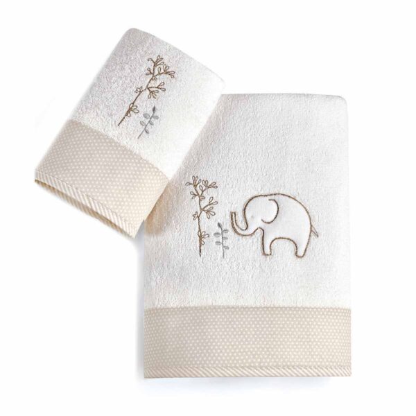 - Το σετ περιλαμβάνει μία πετσέτα προσώπου 40 x 60 cm και μία πετσέτα σώματος διαστάσεων 70 x 125 cm.