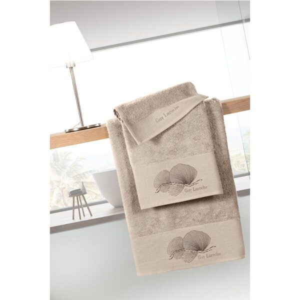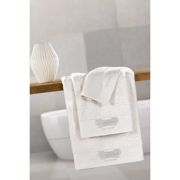 €43.00Σετ πετσέτσες Guy Laroche Belize 3 τεμαχίων, με Μοντέρνο διακοσμητικό Κέντημα με μεταλλικά τρούκς. Εξαιρετικά απαλές πετσέτες & υδρόφιλες, ιδανικές για την περιποίησή σας μετά το μπάνιο. Βάρος 500gr/m²