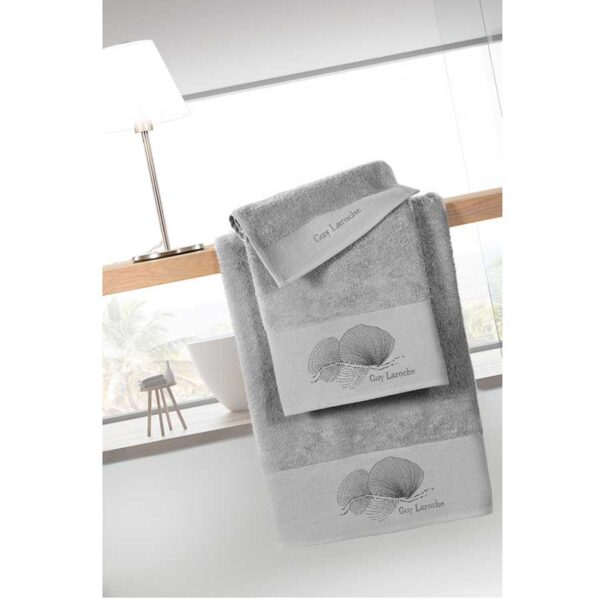 €43.00Σετ πετσέτες μπάνιου σε γκρι χρώμα με μοντέρνο σχέδιο. Κατασκευασμένες από 100% βαμβάκι 500 gr/m² που τις καθιστά εξαιρετικά απαλές και απορροφητικές. Από την εταιρεία Guy Laroche.