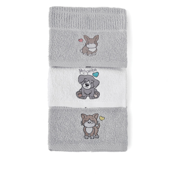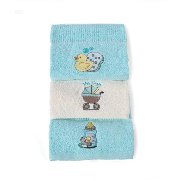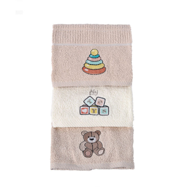 - Τεμάχια: 1 Πετσέτα Χεριών 30×50, 1 Πετσέτα Προσώπου 50×90, 1 Πετσέτα Μπάνιου 70×140