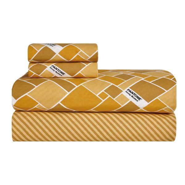 €66.00Σετ υπέρδιπλα σεντόνια από τη σειρά Pantone της εταιρείας Kentia. Έχουν γεωμετρικό σχέδιο σε μουσταρδί αποχρώσεις. Το ύφασμά τους είναι 100% βαμβάκι 150 κλωστών, απαλό και ανθεκτικό. Τα χρώματα είναι ανεξίτηλα τυπωτά (reactive colours), για να μην αλλοιωθούν με το πλύσιμο και τις χρήσεις. Οι μαξιλαροθήκες φάκελος είναι με το σχέδιο του πανωσέντονου.