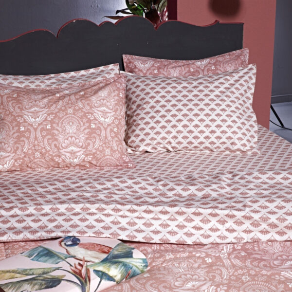 - Τεμάχια: 1 Πανωσέντονο 240×270, 1 Κατωσέντονο 240×270, 2 Μαξιλαροθήκες Φάκελος 50×70.