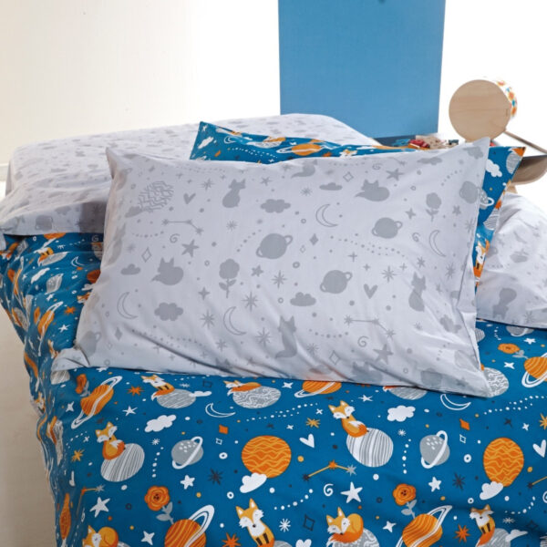 Το σετ περιλαμβάνει δύο σεντόνια ίσια 160 x 255 εκατοστά και μια μαξιλαροθήκη 50 x 70 εκατοστά.