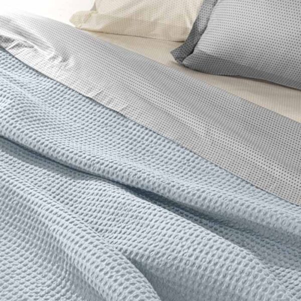€40.00Κουβερλί μονό με καπιτονέ ανάγλυφο σχέδιο και μπλε ραφ χρώμα από την εταιρεία Guy Laroche. Το εξωτερικό ύφασμα είναι κατασκευασμένο από 100% microfiber ενώ εσωτερικά διαθέτει λεπτή πολυεστερική βάτα, που το καθιστά ιδανικό ανοιξιάτικο και καλοκαιρινό σκέπασμα. Το σετ περιλαμβάνει και την μαξιλαροθήκη oxford 45×45 με το ίδιο σχέδιο.